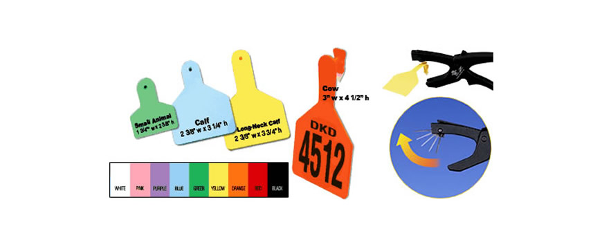 » Disponible en 4 tamaños (para vacas, becerros, arete cuello largo y animales pequeños).